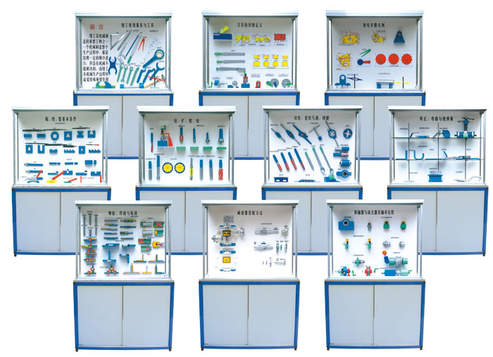 陳列柜、機械陳列柜、電機與變壓器陳列柜、機械基礎陳列柜、機械零件陳列柜、減速器陳列柜、機械原理陳列柜、機械制圖陳列柜、模具示教陳列柜、金屬切削陳列柜、金屬工藝學陳列柜、公差配合陳列柜、鉗工工藝學陳列柜、金屬刀具陳列柜、機床夾具陳列柜、車工工藝學陳列柜、機械設計基礎陳列柜、機械綜合陳列柜、機械制圖模型、立體示教模型、電機模型、變壓器模型、透明塑膠模具、五金教學模具、機械教學掛圖、機床電氣實訓設備、機床維修考核設備、數(shù)控車床綜合實訓考核實驗臺、機電一體化實驗臺、光機電一體化實訓設備、工程制圖實驗室設備,液壓氣動PLC控制實驗臺、透明液壓注塑機模型、透明注塑機模模型、冷沖圧機模型、多功能工程制圖桌、機械創(chuàng)新搭接實驗臺、教學生產型數(shù)控車床、數(shù)控銑床、機電一體化《數(shù)控編程實驗》、可編程控制實驗臺、客貨兩用教學仿真電梯實訓設備、鉗工實訓設備、機械原理、機械零件、金屬切削刀具、公差配合、車工工藝學、鉗工工藝學、等系列陳列柜以及液壓演示臺