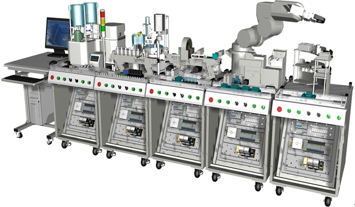 機(jī)電一體化技術(shù)實(shí)訓(xùn)設(shè)備是指機(jī)械技術(shù)、電工電子技術(shù)、微電子技術(shù)、信息技術(shù)、傳感器技術(shù)、接口技術(shù)、信號(hào)變換技術(shù)等多種技術(shù)進(jìn)行有機(jī)地結(jié)合,并綜合應(yīng)用到實(shí)際中去的技能實(shí)訓(xùn)綜合技術(shù),現(xiàn)代化的自動(dòng)生產(chǎn)設(shè)備幾乎可以說都是機(jī)電一體化的設(shè)備。自動(dòng)化生產(chǎn)線實(shí)訓(xùn)考核系統(tǒng),可以培養(yǎng)和提高學(xué)生專業(yè)綜合能力,是一種重要的實(shí)訓(xùn)設(shè)備。自動(dòng)化生產(chǎn)線實(shí)訓(xùn)系統(tǒng)、基于PLC技術(shù)的自動(dòng)化生產(chǎn)線實(shí)訓(xùn)考核系統(tǒng),可以培養(yǎng)和提高學(xué)生專業(yè)綜合能力,是一種重要的實(shí)訓(xùn)設(shè)備。自動(dòng)化生產(chǎn)線實(shí)訓(xùn)系統(tǒng)整體包括自動(dòng)供料、檢測(cè)傳輸、檢測(cè)加工、自動(dòng)裝配、自動(dòng)分揀等工序,很好的將機(jī)械技術(shù)、微電子技術(shù)、電工電子技術(shù)、傳感測(cè)試技術(shù)、接口技術(shù)、信息變換技術(shù)、網(wǎng).絡(luò)通信技術(shù)等多種技術(shù)有機(jī)地結(jié)合。該系統(tǒng)中自動(dòng)分揀站的設(shè)計(jì)過程,包括系統(tǒng)硬件設(shè)計(jì)、PLC控制設(shè)計(jì)和程序設(shè)計(jì)方法,F(xiàn)代化的自動(dòng)生產(chǎn)設(shè)備的最大特點(diǎn)是它的綜合性和系統(tǒng)性,在這里,機(jī)械技術(shù)、微電子技術(shù)、電工電子技術(shù)、傳感測(cè)試技術(shù)、接口技術(shù)、信息變換技術(shù)、網(wǎng)絡(luò)通信技術(shù)等多種技術(shù)有機(jī)地結(jié)合,并綜合應(yīng)用到生產(chǎn)設(shè)備中:而系統(tǒng)性指的是,生產(chǎn)線的傳感檢測(cè)、傳輸與處理、控制、執(zhí)行與驅(qū)動(dòng)等機(jī)構(gòu)在微處理單元的控制下協(xié)調(diào)有序地工作,有機(jī)地融合在一起?删幊绦蚩刂破(PLC)以其高抗干擾能力、高可靠性、高性能價(jià)格比且編程簡(jiǎn)單而廣泛地應(yīng)用在現(xiàn)代化的自動(dòng)生產(chǎn)設(shè)備中,擔(dān)負(fù)著生產(chǎn)線的大腦一微 處理單元的角色。因此,培養(yǎng)掌握機(jī)電一體化技術(shù),掌握PLC技術(shù)及PLC網(wǎng)絡(luò)技術(shù)的技術(shù)人材是當(dāng)務(wù)之急。而一套基于PLC技術(shù)的自動(dòng)化生產(chǎn)線實(shí)訓(xùn)考核設(shè)備可以模擬一個(gè)與實(shí)際生產(chǎn)情況+分接近的控制過程,使學(xué)習(xí)者得到一個(gè)非常接近于實(shí)際的教學(xué)設(shè)備環(huán)境,從而縮短了理論教學(xué)與實(shí)際應(yīng)用之間的距離。自動(dòng)分揀站需完成對(duì)上一單元送來的已加工、裝配的工件進(jìn)行分揀。使不同顏色的工件從不同的料槽分流的功能。當(dāng)輸送站送來工件放到傳送帶上并為入料口光電傳感器檢測(cè)到時(shí),即啟動(dòng)變頻器,工件開始送入分揀區(qū)進(jìn)行分揀。上海碩博弘揚(yáng)大國(guó)工匠精神, 發(fā)展職業(yè)教育,應(yīng)用教學(xué)設(shè)備,為企業(yè)培養(yǎng)高技能人才,而專業(yè)生產(chǎn):光機(jī)電一體化(自動(dòng)生產(chǎn)線)實(shí)訓(xùn)裝置、灌裝自動(dòng)化生產(chǎn)線實(shí)訓(xùn)裝置、工業(yè)自動(dòng)生產(chǎn)線實(shí)訓(xùn)裝置 、工業(yè)控制模擬實(shí)訓(xùn)裝置 、機(jī)電一體化組合實(shí)訓(xùn)平臺(tái) 、機(jī)電一體化綜合實(shí)訓(xùn)考核裝置、自動(dòng)化生產(chǎn)安裝與調(diào)試實(shí)訓(xùn)裝置 、光機(jī)電一體化高速分揀實(shí)訓(xùn)系統(tǒng) 、典型機(jī)電設(shè)備安裝與控制實(shí)訓(xùn)裝置、模塊式柔性自動(dòng)環(huán)形生產(chǎn)線實(shí)驗(yàn)系統(tǒng)(帶機(jī)器人工程型)、立體停車庫(kù)實(shí)物教學(xué)實(shí)驗(yàn)裝置、機(jī)電一體化柔性生產(chǎn)線加工實(shí)訓(xùn)系統(tǒng)(5站)、網(wǎng)絡(luò)型模塊式柔性自動(dòng)化生產(chǎn)線實(shí)驗(yàn)系統(tǒng)、模塊式柔性自動(dòng)環(huán)形生產(chǎn)線實(shí)驗(yàn)系統(tǒng)(工程型)、柔性生產(chǎn)制造實(shí)驗(yàn)系統(tǒng)(工程型)、現(xiàn)代物流倉(cāng)儲(chǔ)自動(dòng)化實(shí)驗(yàn)系統(tǒng)、運(yùn)動(dòng)實(shí)訓(xùn)裝置、循環(huán)搬運(yùn)自動(dòng)控制實(shí)訓(xùn)裝置、平面雙軸運(yùn)行控制實(shí)訓(xùn)裝置、工業(yè)機(jī)械手實(shí)訓(xùn)裝置、物料分揀實(shí)訓(xùn)裝置、機(jī)械手實(shí)訓(xùn)裝置 、立體倉(cāng)庫(kù)實(shí)訓(xùn)裝置、十字路口交通燈實(shí)訓(xùn)系統(tǒng)、機(jī)電液氣一體化綜合實(shí)訓(xùn)裝置、光機(jī)電一體化高速分揀實(shí)訓(xùn)系統(tǒng)、步進(jìn)伺服控制綜合實(shí)訓(xùn)平臺(tái)、光機(jī)電氣一體化控制實(shí)訓(xùn)系統(tǒng)、 光機(jī)電一體化綜合實(shí)訓(xùn)考核裝置、光機(jī)電一體化實(shí)訓(xùn)考核裝置、光機(jī)電一體化實(shí)訓(xùn)考核裝置、光機(jī)電氣一體化控制實(shí)訓(xùn)系統(tǒng)、自動(dòng)生產(chǎn)線拆裝與調(diào)試實(shí)訓(xùn)裝置、柔性自動(dòng)化生產(chǎn)線實(shí)訓(xùn)系統(tǒng)。