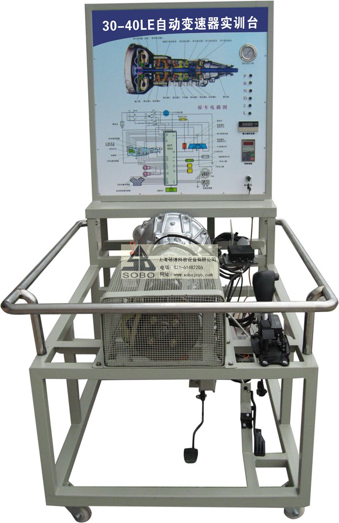 本變速器實(shí)訓(xùn)臺是本公司采用豐田后驅(qū)A340E自動變速器為適應(yīng)汽車教學(xué)需求而研制的,該實(shí)訓(xùn)臺由電控變速器(八成新)、操作顯示面板及發(fā)動機(jī)彩色電氣原理圖電腦控制柜、可移動式臺架(萬向腳輪)、驅(qū)動系統(tǒng)(腳踏式油門踏板)變頻電機(jī)驅(qū)動、啟動系統(tǒng)(電門鎖方式啟動)、車速傳感器、電磁閥執(zhí)行器、原車電腦、具有發(fā)動機(jī)運(yùn)轉(zhuǎn)及顯示(轉(zhuǎn)速.車速.檔位)、液壓油壓力顯示表(顯示換檔過程油壓)、自動變速器電磁閥工作指示LED燈、故障設(shè)置區(qū)可設(shè)置12路故障(老師設(shè)置任一路線路故障)、故障排除區(qū)(學(xué)生通過各種儀器、儀表、)在面板上用專用排故線連接排除故障、傳感器信號模擬等多項(xiàng)功能、具結(jié)構(gòu)緊湊、操作方便、安全可靠、教學(xué)直觀、是汽車自動變速器實(shí)物教學(xué)不可缺少的實(shí)驗(yàn)室設(shè)備之一。