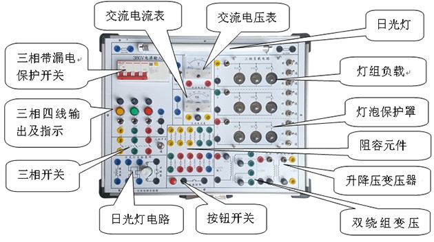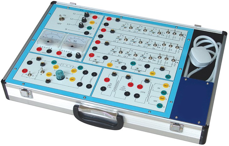 交流電路實驗箱 主要是進行"電工學"及"電路原理"中的強電部分實驗,如單相交流電路、三相電路、日光燈電路實驗。本實驗箱由模塊單元和元件庫相結合的板面構成,全部采用歐洲標準的安全插座和安全實驗導線, 連線方便,接觸可靠,而且壽命長、效率高,有效預防觸電隱患。實驗面板上印有元件符號及主要參數(shù)便于學生識別。實驗箱結構緊湊實用直觀,安全可靠,能有效培養(yǎng)學生的動手能力,維修方便、簡捷?蓾M足各類高、中等院校及職業(yè)技術類院校開設的電工典型實驗。