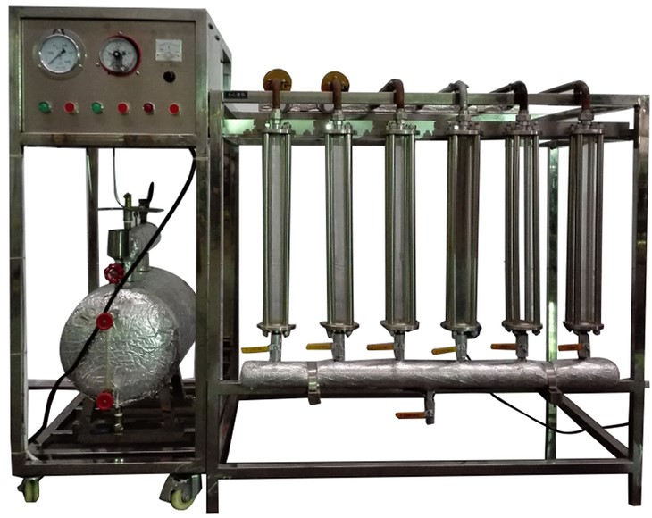 紫銅傳熱管道(銅裸管、涂黑管、翅片管、玻璃絲棉保溫管、鋸末保溫管、鍍鉻管各一組),調(diào)節(jié)閥門組,蒸汽發(fā)生器,熱風(fēng)幕風(fēng)機,壓力控制器及溫度保護裝置,不銹鋼臺架及控制屏等。