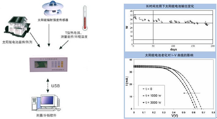 準(zhǔn)確測試光伏方陣和組件在野外條件下的太陽輻射強度,環(huán)境溫度,風(fēng)速,電池組件的溫度,開路電壓、短路電流、最大功率、最大功率點電壓、最大功率點電流和填充因子測算光伏方陣和組件在標(biāo)準(zhǔn)測試條件下(STC)下的開路電壓、短路電流、最大功率、最大功率點電壓、最大功率點電流、填充因子和轉(zhuǎn)換效率