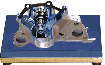 1.采用全新捷達水泵總成(附件齊全)進行解剖,各零部件齊全,能夠全面的展示總成的內外結構。