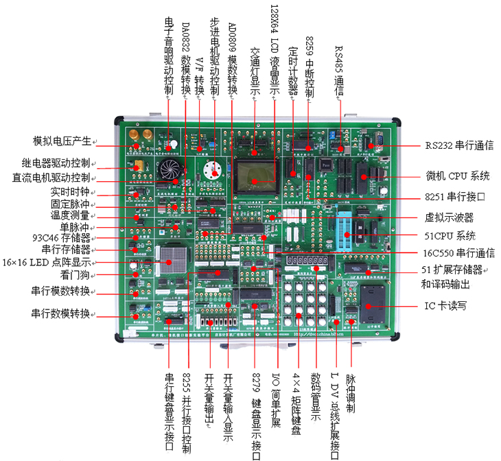 含箱體、電源、51系統(tǒng)和88系統(tǒng)以及標(biāo)配實(shí)驗(yàn)電路 |