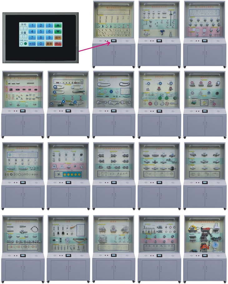 機(jī)械設(shè)計零件陳列柜,是根據(jù)機(jī)械設(shè)計(零件)課程基本要求設(shè)計制造的實驗設(shè)備。陳列柜通過機(jī)械零件模型或?qū)嵨,配合相?yīng)的圖文資料,形象地展示與解說機(jī)械設(shè)計的基本知識,加強(qiáng)學(xué)生對通用機(jī)械零件的類型、結(jié)構(gòu)特點及其設(shè)計的感性認(rèn)知,為進(jìn)一步學(xué)習(xí)機(jī)械設(shè)計奠定基礎(chǔ)。