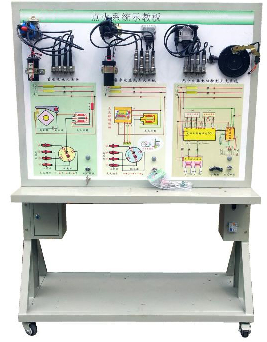 汽油發(fā)動機點火系統(tǒng)保養(yǎng)模塊教具架該設(shè)備采用全新 三種典型(即:觸點式點火系統(tǒng)、霍爾式電子點火系統(tǒng)、無分電器分組點火系統(tǒng))的發(fā)動機點火系統(tǒng)的真實部件,充分展示發(fā)動機點火系統(tǒng)的組成結(jié)構(gòu)和工作過程。