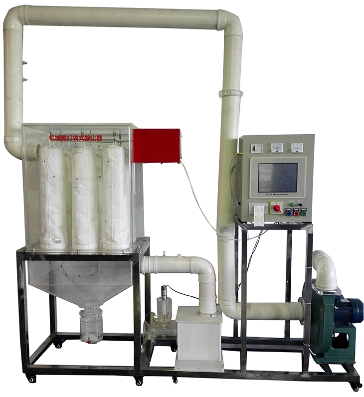 2.除塵器為透明有機玻璃制造,方便了解和觀察袋式除塵的內部結構。