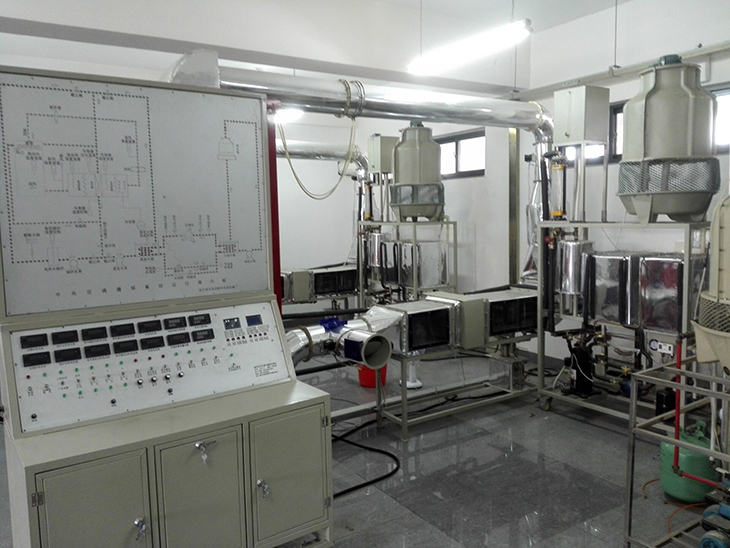 (1)具有蒸汽壓縮式集中式和半集中式中央空調(diào)系統(tǒng)的功能,主要由冷源系統(tǒng)、熱源系統(tǒng)、空氣處理及配送系統(tǒng)及控制與顯示系統(tǒng)等組成?蓾M足學校既能開出驗證性實驗,也可以開設(shè)故障設(shè)置性實驗滿足畢業(yè)設(shè)計、教師科研、創(chuàng)新實驗室所需,能實現(xiàn)一機多用。