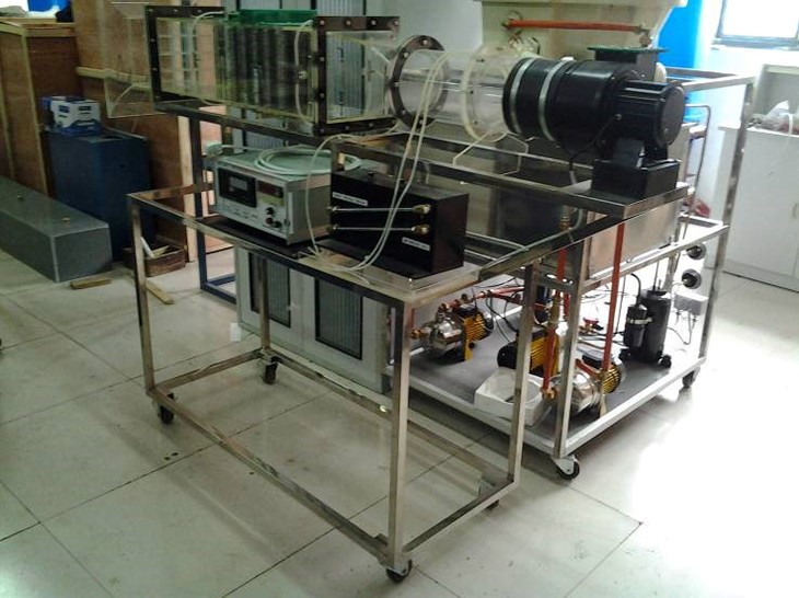 多翼式低噪音風(fēng)機(jī),自動(dòng)調(diào)節(jié)風(fēng)門,組合式有機(jī)玻璃風(fēng)洞,翅片加熱管,加熱由固體調(diào)壓模塊配電位器調(diào)節(jié)加熱功率,數(shù)顯電流表、電壓表,翅片管簇順排和叉排組合,溫度傳感器,畢托管配差壓傳感器測(cè)量風(fēng)量,16路萬(wàn)能信號(hào)輸入巡檢儀顯示溫度、阻力、流量,不銹鋼支架。