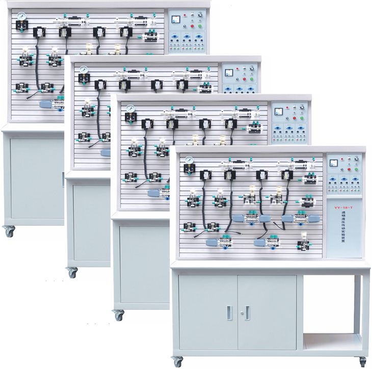 透明液壓實驗臺為實現(xiàn)液壓傳動課程現(xiàn)代化教學(xué)而進行研究的最新科技成果,它填補了技校、中專、大專院校的液壓傳動透明教學(xué)設(shè)備的國家空白。液壓傳動具有重量輕、功率大、結(jié)構(gòu)簡單、布局靈活、控制方便等特點、速度、扭矩、功率均可作無級調(diào)節(jié),能迅速換向和變速,調(diào)速范圍寬,快速性好,工作平穩(wěn)、噪音小,元器件已實現(xiàn)系列化、標(biāo)準(zhǔn)化,通用化等一系列優(yōu)點,隨著科學(xué)技術(shù)的發(fā)展,液壓傳動作為一種可以傳遞動力和控制的傳動方式,已經(jīng)日益廣泛應(yīng)用到醫(yī)療、科技、軍事、工業(yè)自動化生產(chǎn)、起動、運輸、礦山、建筑、航空等各個領(lǐng)域。為了適應(yīng)在短暫課堂時間內(nèi),完成多個液壓油路的教學(xué)內(nèi)容。同時對比演示多個不同油路的工作原理。而且,使油路系統(tǒng)的安裝調(diào)試有必要的程序且不占用上課教學(xué)時間。就必須有多臺設(shè)備同時工作。同時,YY-18