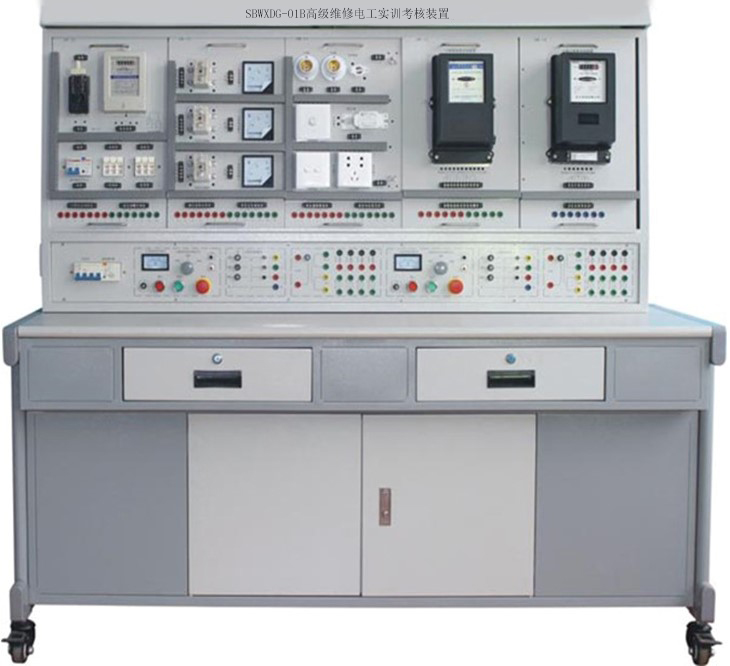 維修電工實訓裝置,維修電工及儀表照明實訓裝置,維修電工實訓裝置是按照勞動和社會保障部頒發(fā)的職業(yè)技能鑒定的要求而設計的,該裝置集理論、實際操作和考核鑒定為一體的多功能設備,此實訓臺為無線電源控制,通過觸摸屏控制各實訓臺電源,控制調(diào)節(jié)方便簡單,不僅可滿足我系機電一體化技術、生產(chǎn)過程自動化、汽車檢測與維修,鐵道信號自動控制,鐵道供電技術等專業(yè)的學生進行電工儀表和照明電路的實訓操作教學,而且也可用于初、中、高級維修電工技能考核。